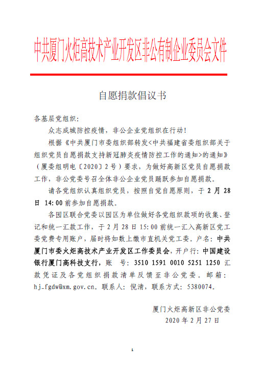 作為LED制造行業(yè),乾照黨總支大部分黨員的工作區(qū)域是在完全封閉并要求無塵的車間中,沒有網(wǎng)絡,手機甚至是喝水的杯子都不允許隨意帶入。進入車間后,每個人都“全副武裝”:防塵服、鞋套、口罩缺一不可,個人物品均需放置在固定的區(qū)域。也正因為這樣特殊的工作環(huán)境,黨員干部以及積極向黨組織靠攏的積極分子們更能體會前線物資的寶貴。不能讓前線缺了物資!也是這樣的信念,讓在工作時間“隔絕外界”的乾照黨員們,在收到自愿捐款倡議的第一時間紛紛獻出了自己的一份心意,匯總表一再更新,款項總數(shù)一次次增加:500元、1500元、2588元、3888元、4388元……5338元不是終點,乾照黨總支會緊跟上級黨委的步伐,為抗擊疫情工作持續(xù)奉獻屬于乾照黨員的一份力量!