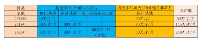 首先分享一下乾照的產(chǎn)能情況。乾照光電南昌基地分兩期共投資50億元。其中一期工程于2018年1月正式動工,2018年12月建成并投產(chǎn),將新增氮化鎵LED外延片和芯片產(chǎn)能80萬片/月(折合2英寸)。二期工程將根據(jù)市場情況擇機動工,將在一期工程的基礎(chǔ)上再增加80萬片/月的產(chǎn)能。