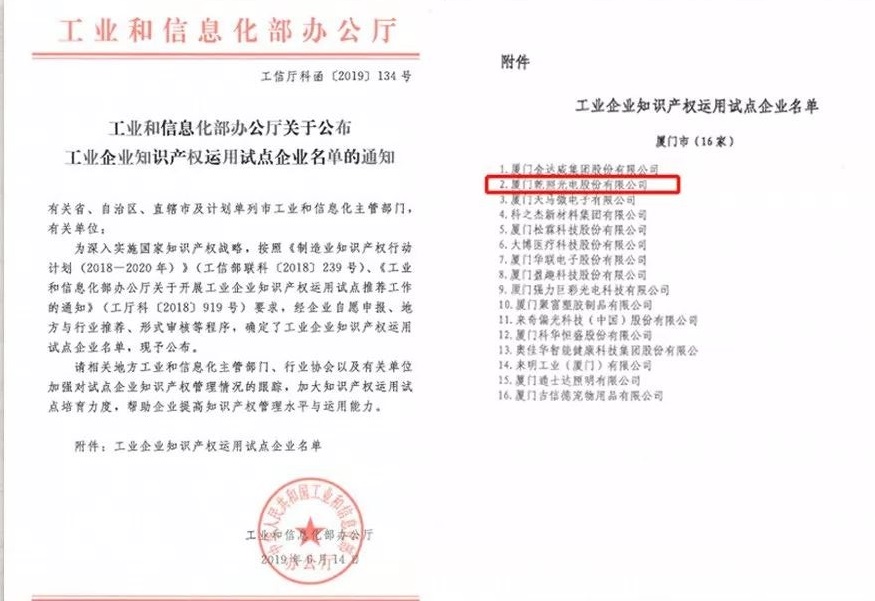 入選國家工業(yè)和信息化部公布的“工業(yè)企業(yè)知識(shí)產(chǎn)權(quán)運(yùn)用試點(diǎn)企業(yè)名單”