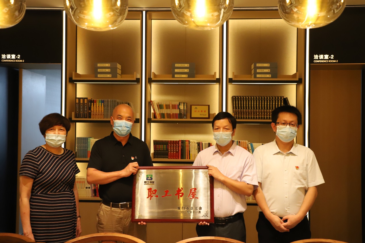 2020年5月26日,黨建掛鉤聯(lián)系單位廈門市總工會(huì)副主席劉義平一行蒞臨乾照光電調(diào)研指導(dǎo),翔安區(qū)總工會(huì)常務(wù)副主席王黎明等領(lǐng)導(dǎo)陪同調(diào)研。調(diào)研組一行參觀了公司展廳、書吧以及黨建文化墻、黨群活動(dòng)中心,詳細(xì)了解了公司生產(chǎn)、經(jīng)營以及黨建帶工建工作情況。期間,雙方還舉行了“職工書屋”授牌儀式。