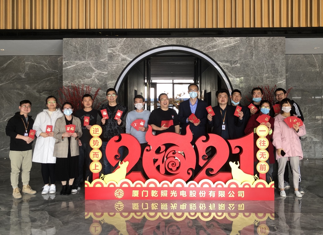 為增添節(jié)日氣氛,使員工感受到溫暖與關(guān)懷,春節(jié)前后,廈門乾照陸續(xù)準(zhǔn)備了新春大禮包、線上抽獎(jiǎng)、除夕年夜飯、開(kāi)門紅包、許愿活動(dòng)及春節(jié)視頻征集等一系列活動(dòng)。