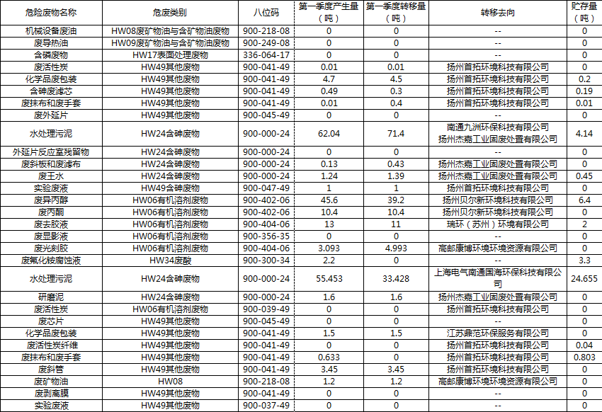 2022年第一季度危廢產(chǎn)生、轉(zhuǎn)移、貯存情況公示