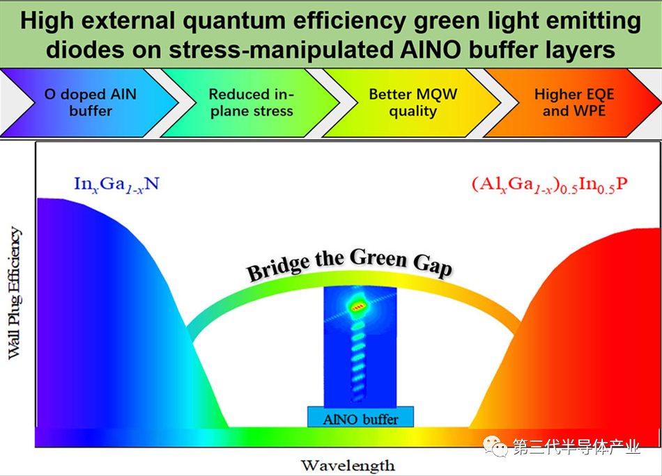 圖1.AlNO緩沖層助力“Green Gap”問題的改善