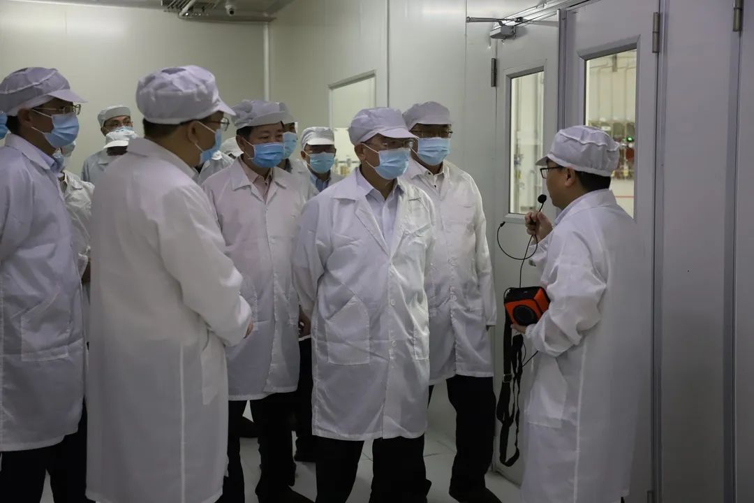 在公司展廳,調研組詳細了解了乾照光電發展歷程、生產經營狀況和戰略規劃等情況,徐樂江副部長對公司產品技術及應用領域等方面進行了細致的詢問。隨后,調研組前往外延制造部生產車間,查看車間生產情況,了解生產制造流程。徐樂江副部長對企業當前發展的態勢和智能化生產表示肯定,并指出企業要提高自主研發創新能力,加快科技成果轉化,提高核心競爭力,協同產業鏈上下游企業強強合作,為經濟高質量發展做出更大貢獻。