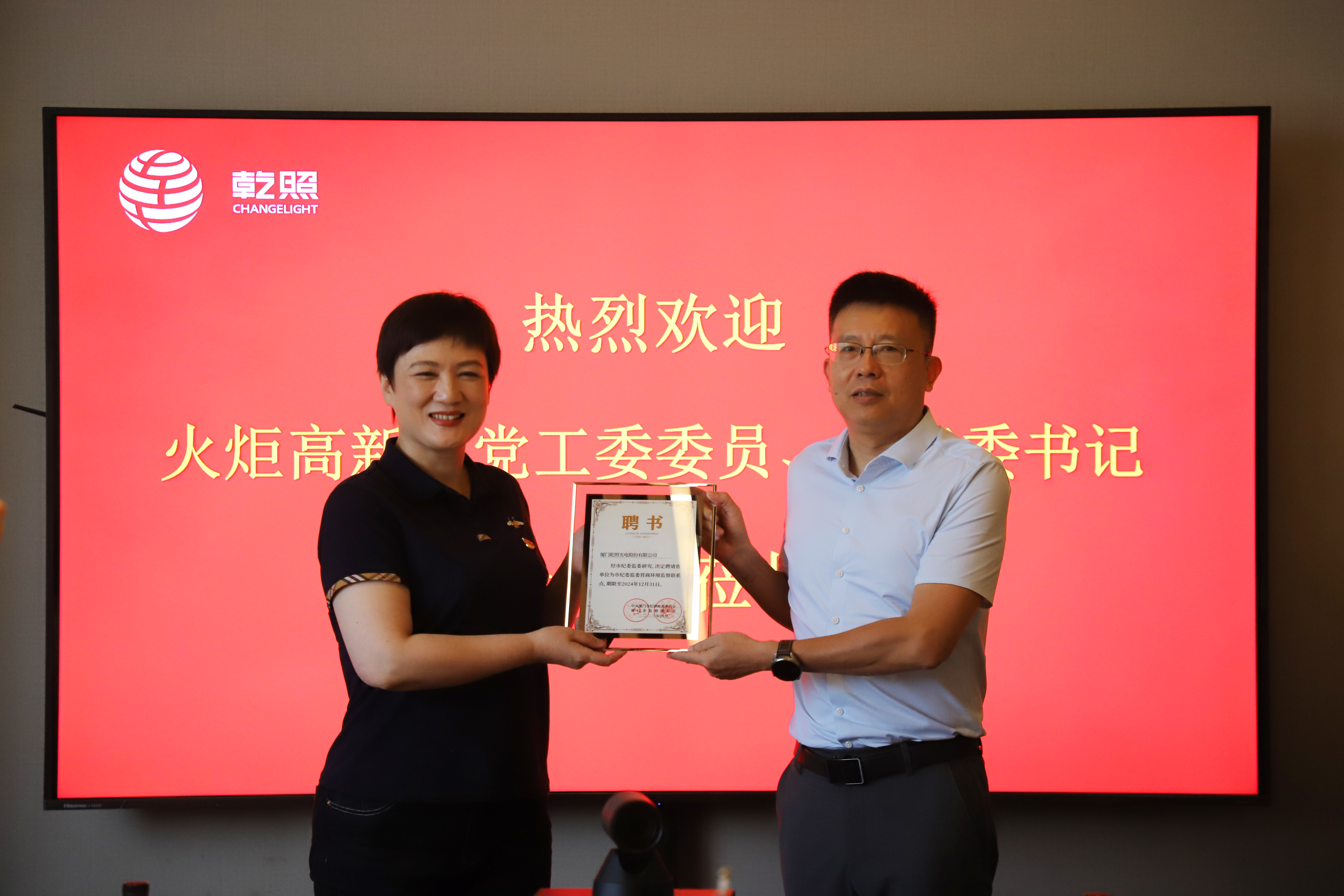 6月13日,廈門火炬高新區紀工委書記陳靜玲帶隊,蒞臨乾照光電進行授聘。總裁崔恒平代表乾照光電接受聘書。