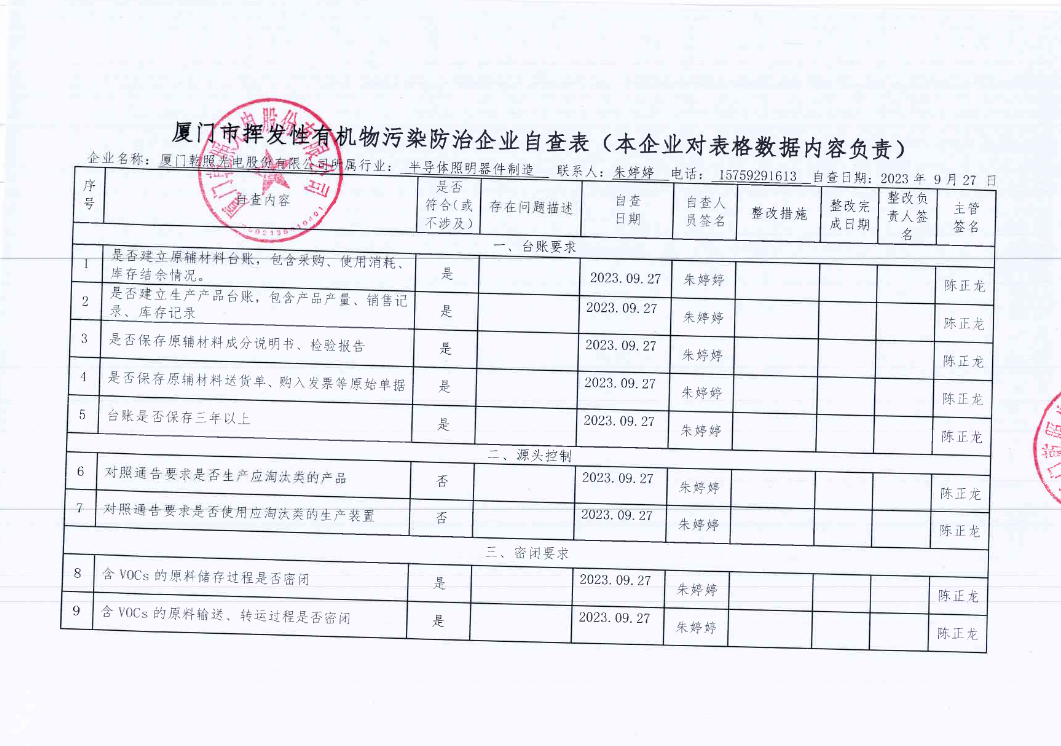 廈門市揮發性有機物污染防治企業自查表——廈門乾照光電股份有限公司
