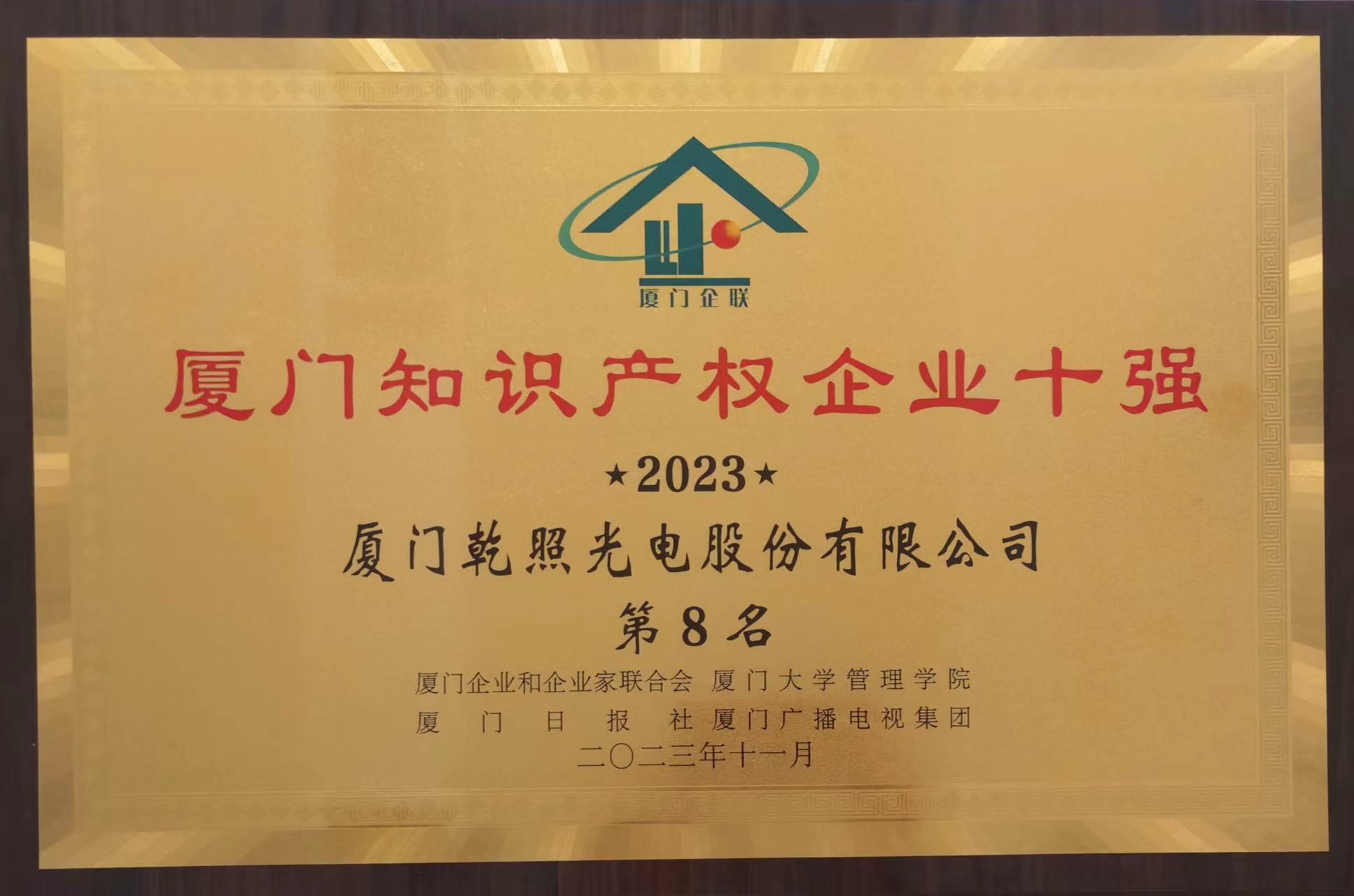 乾照光電榮獲“廈門知識產權企業十強”稱號