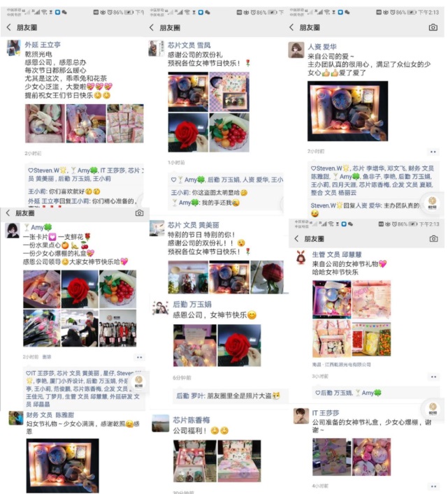 在這個特別的日子里,江西乾照光電用賀卡、鮮花、伴手禮和水果點心打包一份份甜蜜,表達公司對廣大女職工的深切關(guān)愛。少女心爆棚的禮盒更是贏得了全體女同胞的芳心,朋友圈瞬間刷屏夸贊公司福利。