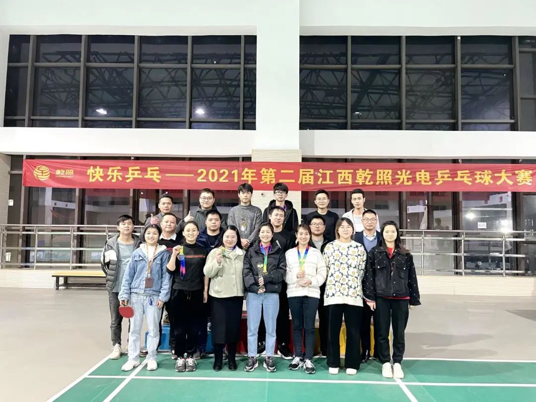 12月15日至12月22日,江西乾照光電黨支部、工會委員會及共青團(tuán)委共同組織開展了乾照光電第二屆乒乓球大賽。本次比賽設(shè)男單、女單、男雙、女雙和男女混合雙打等多個(gè)項(xiàng)目,比賽預(yù)選賽、半決賽釆取單淘汰制三局兩勝,決賽采用積分制循環(huán)賽的形式,吸引了來自各部門共計(jì)42名選手參加。